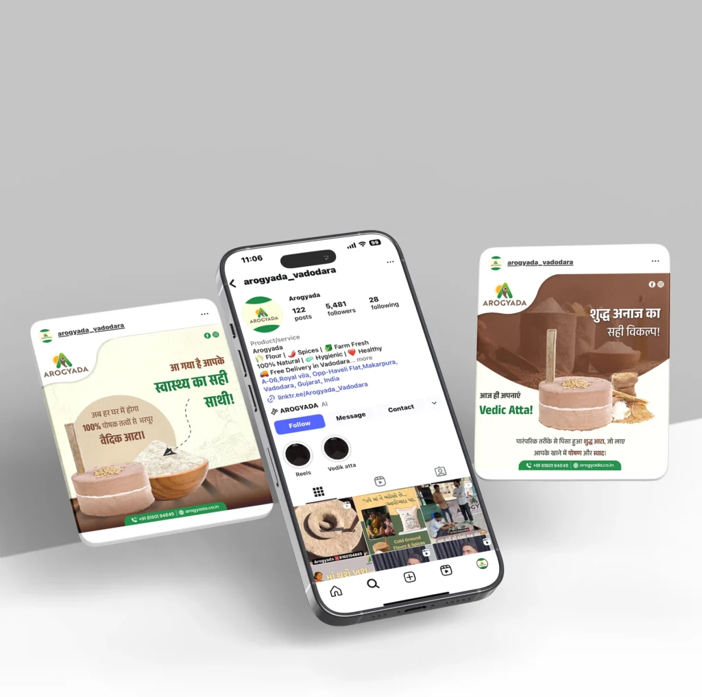 We wanted to make sure that when people hear arogyada, they think of pure and organic flour. To achieve this, we adopted a customer-centric approach. Their Instagram and Facebook pages showcased their traditional flour-making process, the benefits customers gain from their product, and the budget-friendly options they offer.
