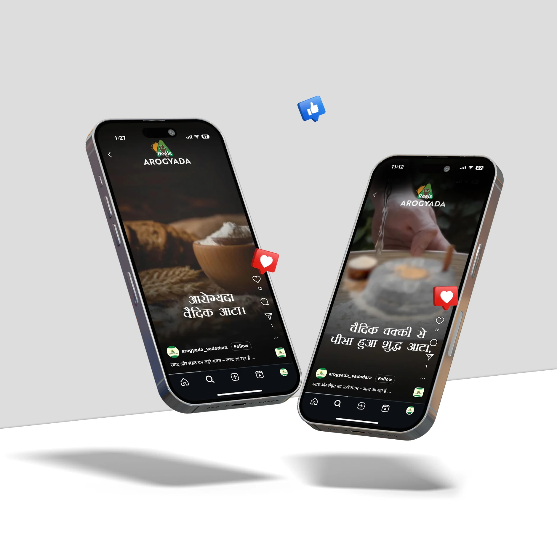 For reel content, it was all about sharing their true process. We showed the authentic atta chaki machine, how raw material is converted into flour and spices, and highlighted the features of fresh atta for health. In conclusion, the reel showcases the wholesome goodness Arogyada brings in every pack.