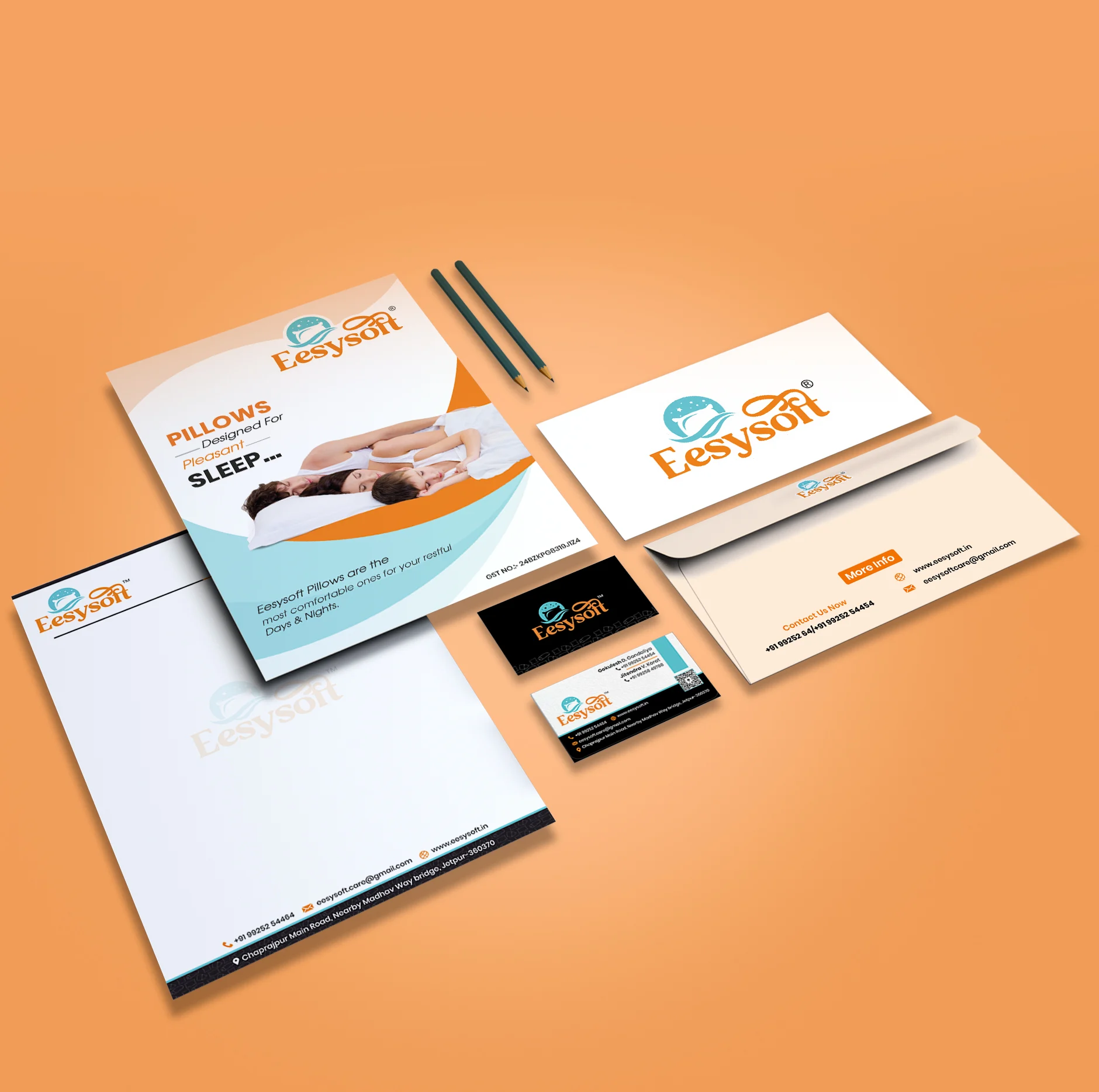 We designed letterhead, visiting cards, and envelopes for Eesysoft. The tone, font, and colour were aligned with the overall brand identity. It looked perfect for professional use because of its layout, texture, and finish, and the cool colour tones made it look aesthetically pleasing.