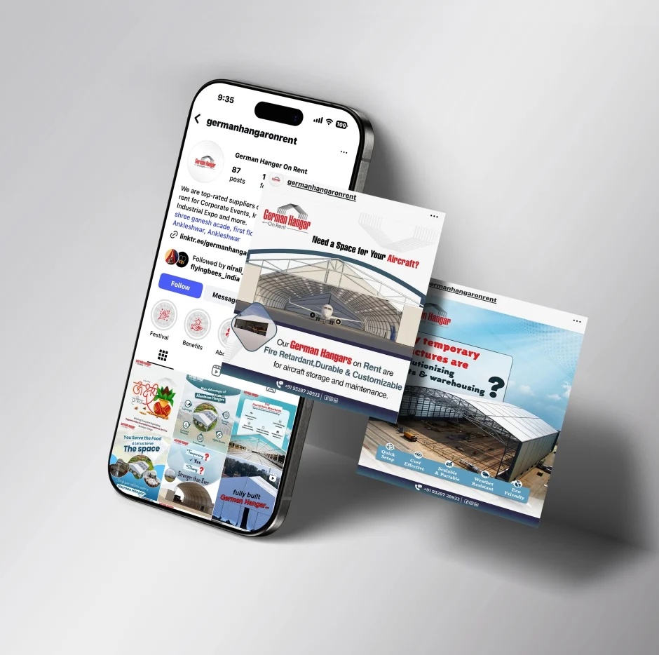 German Hangar had impressive projects but little digital presence. We helped them turn structures into stories by building a strong social media identity. From posts and reels to curated content calendars, we made their platforms more engaging and approachable. Their social channels now not only showcase their projects but also build trust and spark conversations with clients and industry professionals.