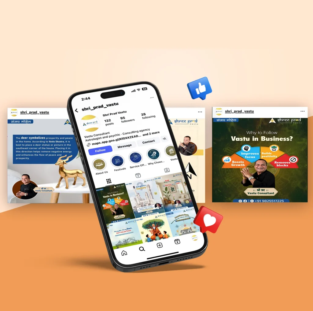 Through social media, we turned ShriPrad’s knowledge into engaging and relatable content. From daily Vastu tips and astrology insights to reels and stories, we created a space where timeless wisdom meets today’s digital lifestyle. His online presence now reflects both credibility and connection, helping more people access his guidance, no matter where they are.